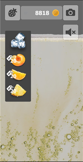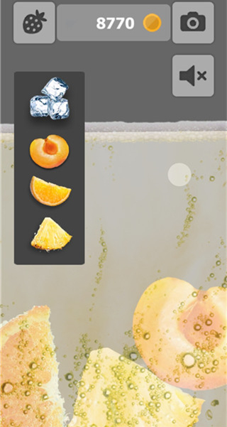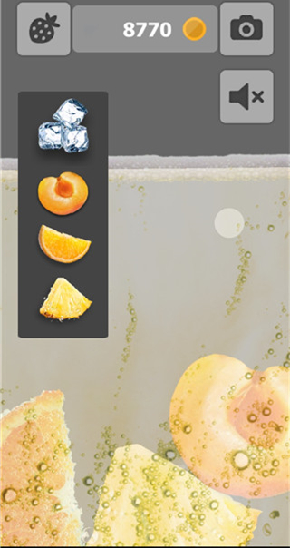 3、此时屏幕中灌慢了气泡水,点击屏幕左上方的草莓,可以选择不同的水果进入其中。