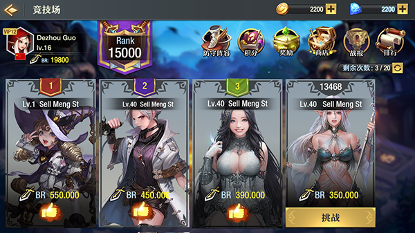 · 从下方列表中选择想要挑战的对手(挑战列表每日可免费刷新5次),挑战排行榜上名次更高玩家,胜利后即可替换他的名次,失败则排名不变;