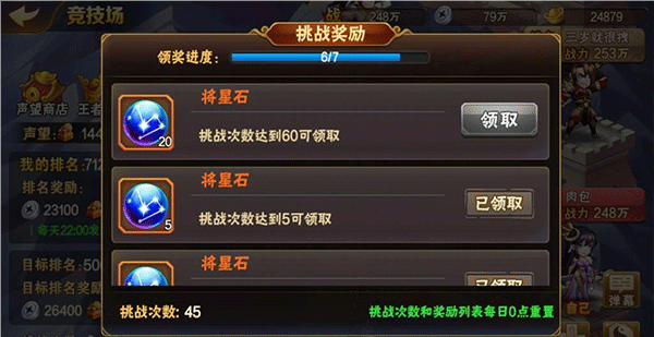 竞技场的话,每天比较合理的次数是35次或者45次,也就是买到30元宝为止或者40元宝为止。这样消耗的资源比较少,每天获得的升星丹和资源也足够,多了也可以,只是会多消耗些元宝,毕竟要细水长流,多节约点也是好的。