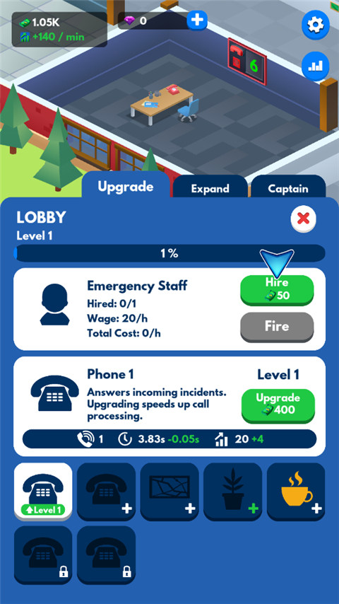 2. 升级关键设施解锁惊喜内容:通过强化消防车队与优化急诊室运营,见证系统升级带来的质变效果。