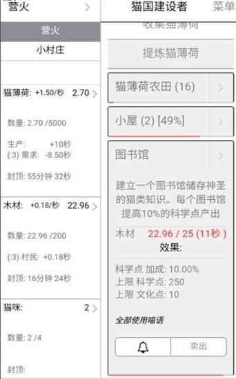 2、在游戏中,玩家可以通过建造图书馆来产出知识,解锁不同的科学内容。科技的发展将极大地推动猫国的建设速度。