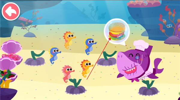 3、在这个场景中,宝宝需要帮助海马宝宝制作汉堡,因此我们先收集一些做汉堡的材料。