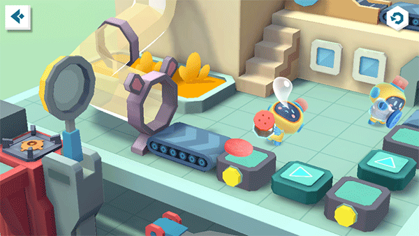 煎锅处的机器人已等候多时,宝宝快使用锅铲弹弓,瞄准煎锅,发射生肉块!听,肉块在锅中滋滋作响,待其变熟即可前往下个地点。