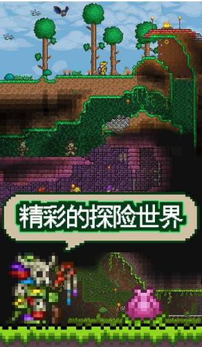 1、像素画风:泰拉瑞亚采用传统的像素艺术风格,画面精致可爱,给玩家带来怀旧的游戏感受。