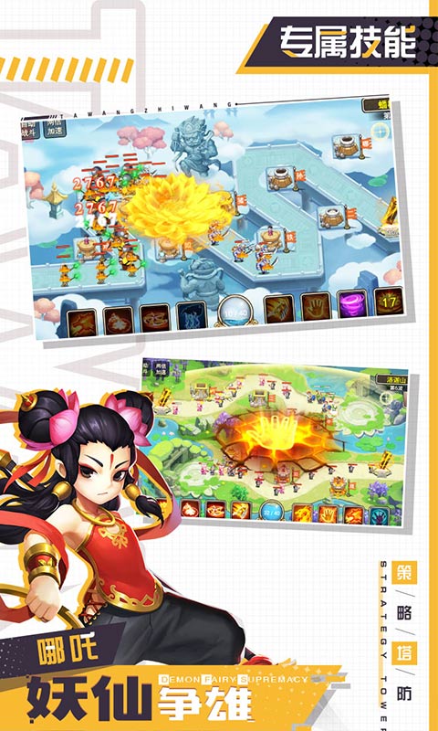 1、塔防西游记以西游记为题材,Q版卡通的动漫画风,精致可爱的人物角色;