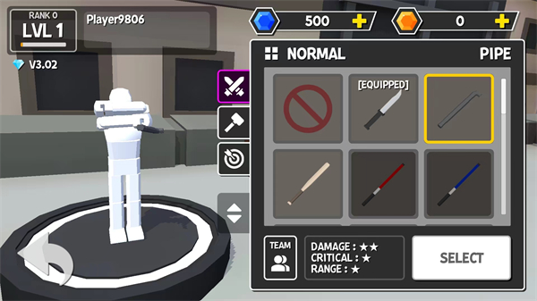 接着进入【WEAPON】界面,选择你喜欢的武器和盾牌。不同装备会影响你的攻击方式与战斗体验。