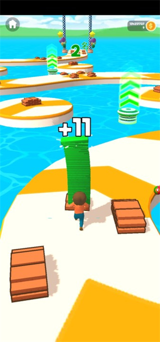 3、在赛道上奔跑,每一个玩家需要去收集地面上出现的颜色方块,记住越多越好。