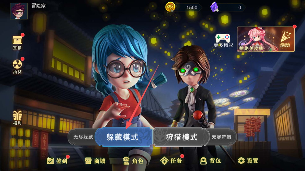 1、打开游戏,点击进入【躲藏模式】