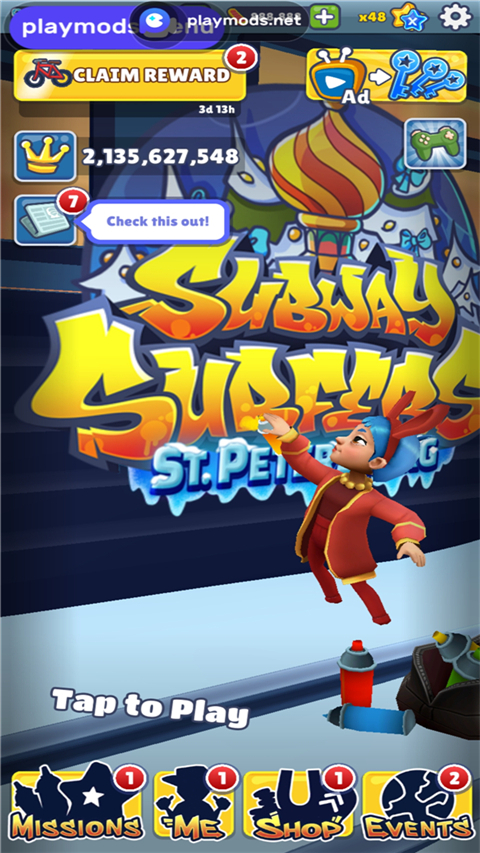 地铁跑酷playmods全地图版本是一款非常好玩的休闲跑酷类手机游戏,这款游戏最大的特色就是为大家解锁了所有的地图,让大家可以在游戏中自由的选择自己喜欢的地图进行游戏,并且游戏中还内置了丰富的mod可以使用,游戏的玩法还和原版一样,玩家们需要在奔跑的过程中躲避障碍,收集金币,游戏画面极其的精致,给玩家们沉浸式的游戏体验,如果你也喜欢这款地铁跑酷playmods全地图版本,那还等什么呢,快来下载试试吧。