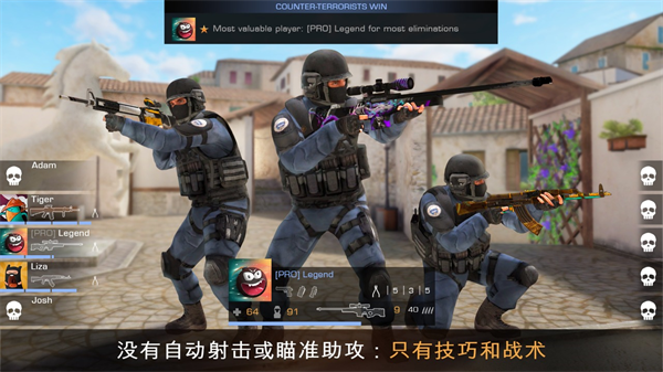Standoff 2靠的是你的技能和实力。游戏的控制直观易懂、经过精细校准,因此易于操作。