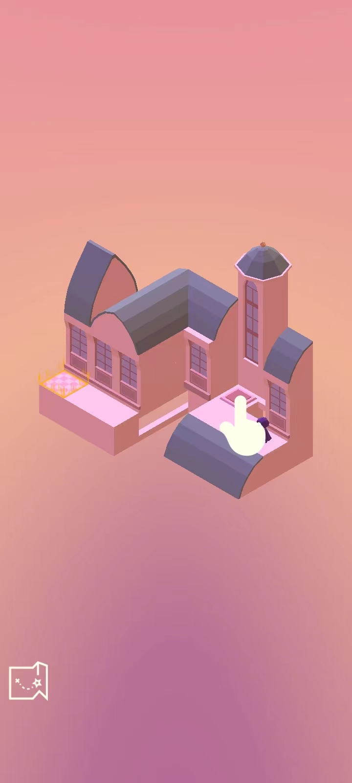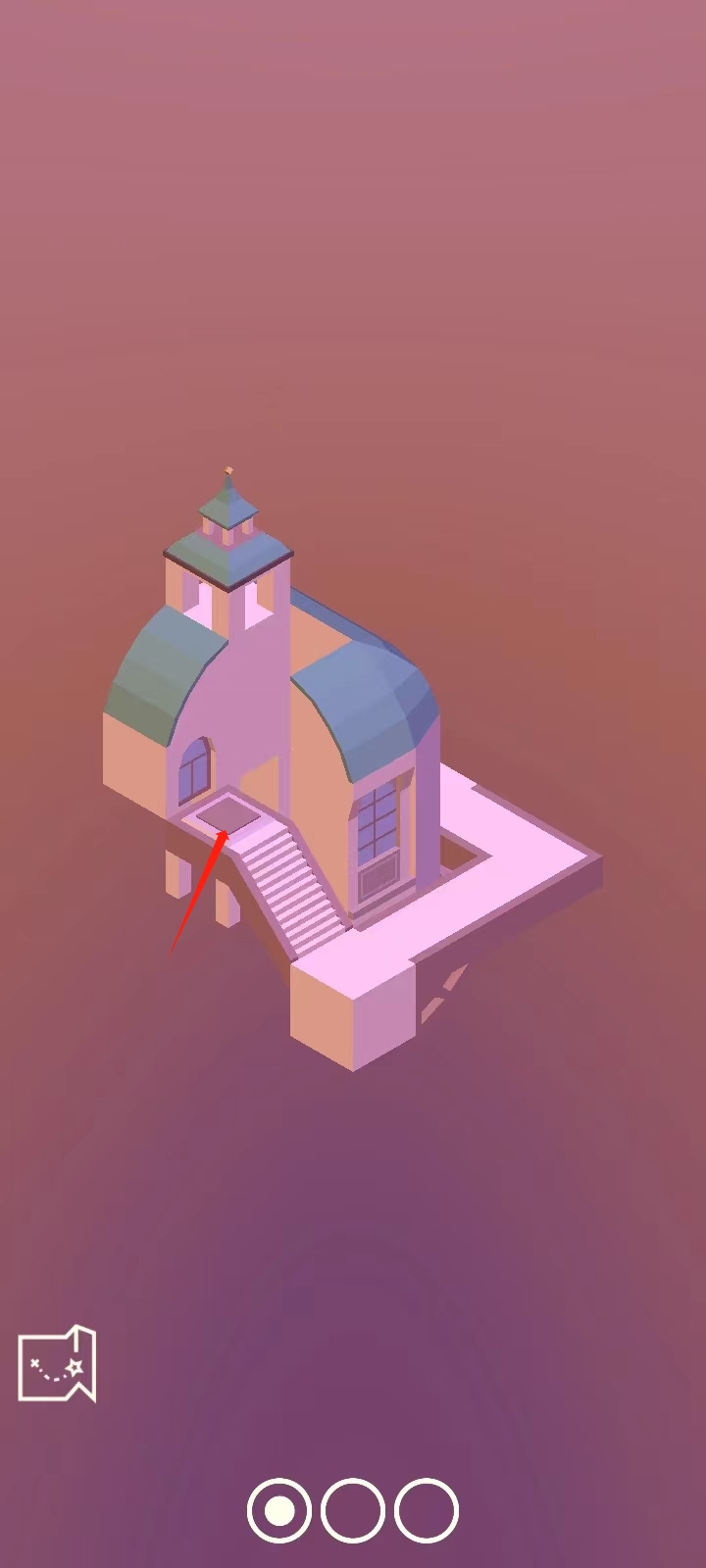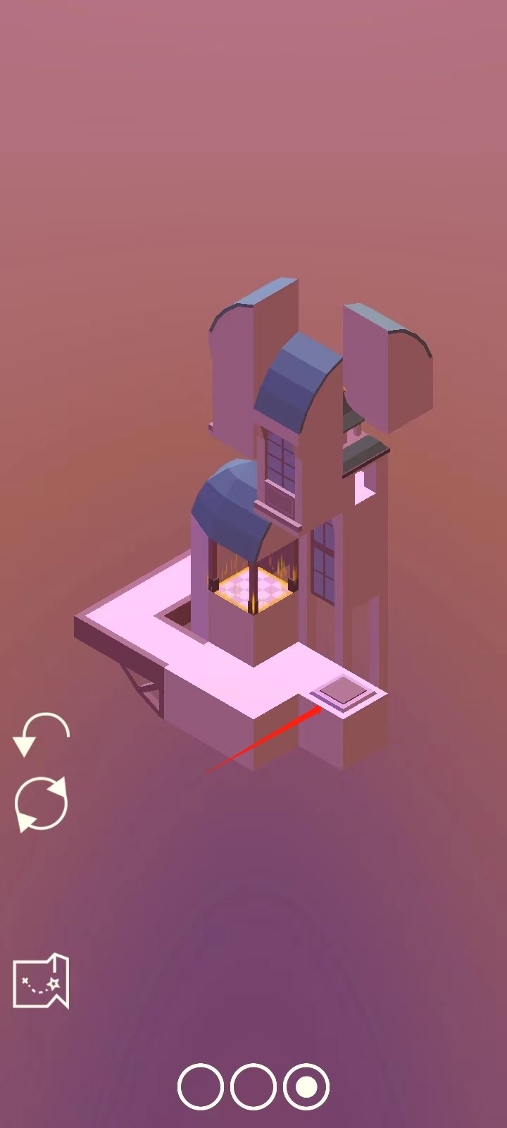 3、第二关则需要走到这个按钮这里,让这里的建筑掉下来,就可以走进去;