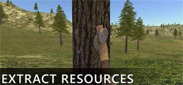 1、通过砍伐树木获取木材,打猎获取食物,收集果实和草药等,合理管理资源。