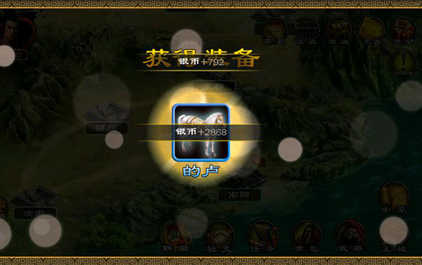 2. 多维装备,强化成长——武器、防具、战马、兵书四大类装备,搭配五阶品质体系,通过深度强化打造专属神装。