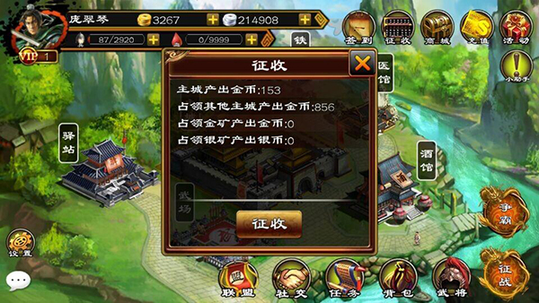 主城30级之后,将会开放“争霸”新玩法。玩家们纷纷回到三国,在三国大地图上扮演一方枭雄逐鹿中原,看谁能一统天下。这时,开发显得极其重要了~开发争霸地图上自己的主城,主城生产金币的速度将会大大提升。是金!币!相信金币的作用大家都懂得~~
