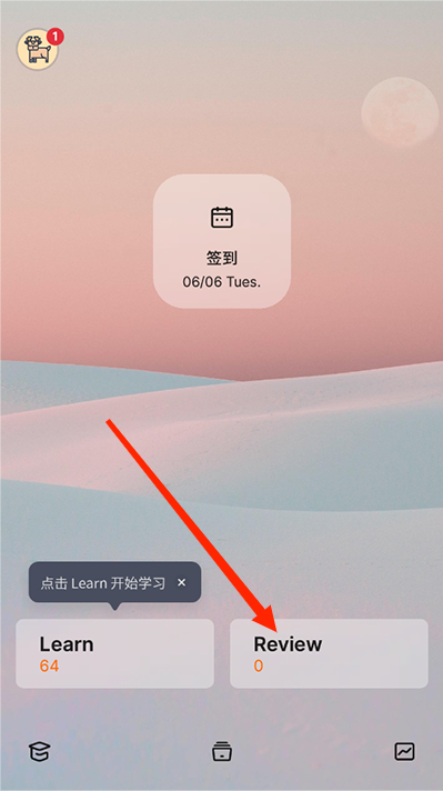 5、回到不背单词主界面,可看到“Review”显示为0,review清空完成。