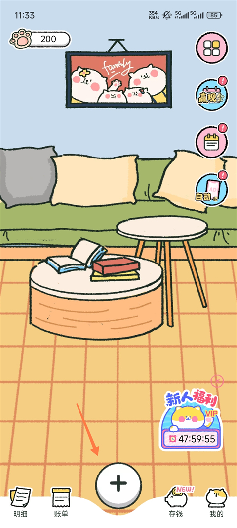 6、你在本子上记下的每一笔账,都有可能吸引来一只猫咪,猫咪可以帮助你解锁更加好看的记账主题和装饰道具