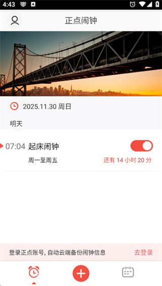 云端同步备份:登录账号即可云端同步闹钟列表,换设备无缝衔接,数据永不丢失