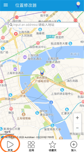 5、从其它app返回到位置修改器后,点击底部菜单中的“开关",就可以停止位置修改器。
