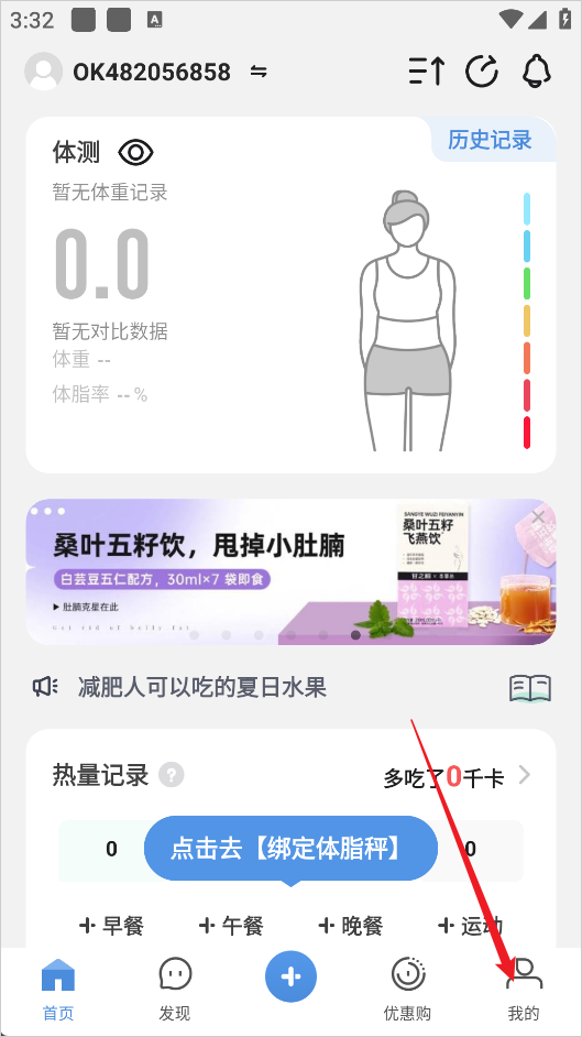 1、进入OKOK健康APP后点击右下角的我的