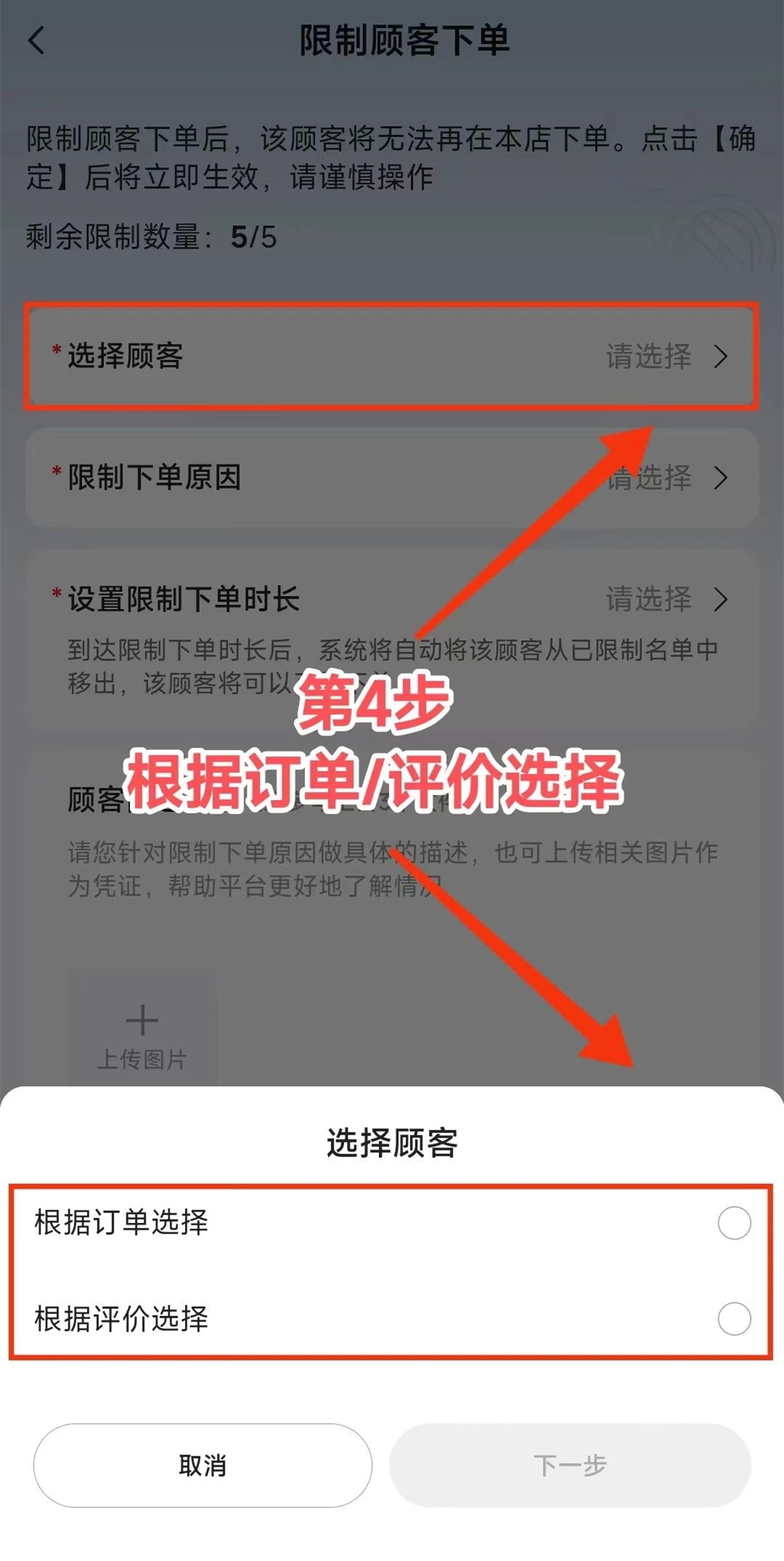 2、然后点击【限制顾客下单】