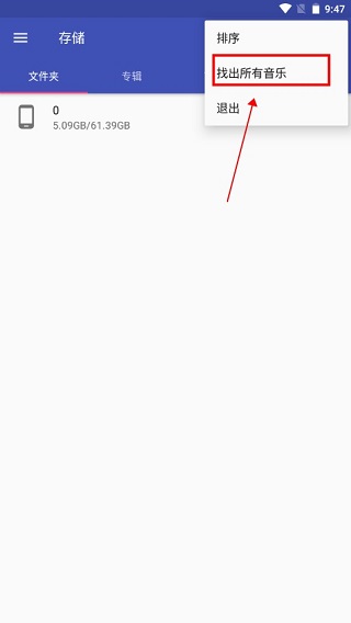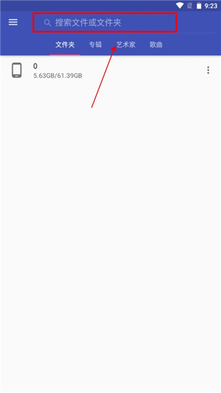 1、在本站下载并安装软件后打开,进入软件首页后可以直接搜索手机内的文件夹寻找歌曲;