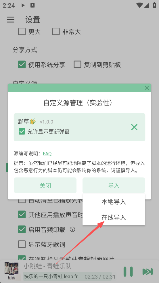 4、点击在线导入音源即可