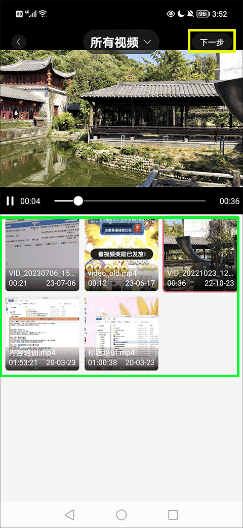 2、若选择“视频去水印”,请从 相册 中导入需要处理的视频,随后点击右上角的“下一步”进入编辑界面;