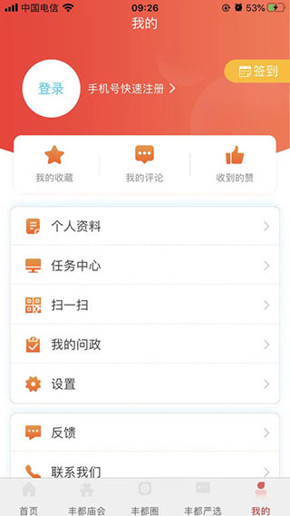 1、下载安装看丰都app,登录或注册一个账号。