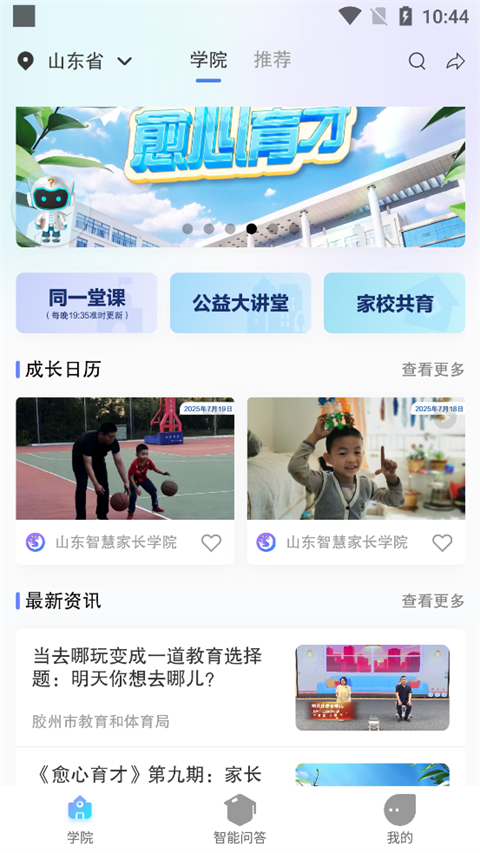 平台开设9大家庭教育版块,海量资讯,内容根据孩子学段分为学龄前、幼儿园、小学、初中、高中,满足不同学段家长对家庭教育的需求,帮助家长提升个人素养,助力孩子全面发展。