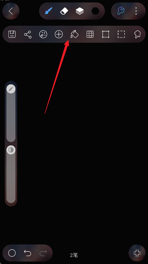 5、当颜色选定完成后,打开设置菜单,点击其中的颜料桶图标,即可一键填充,让作品瞬间焕发色彩!