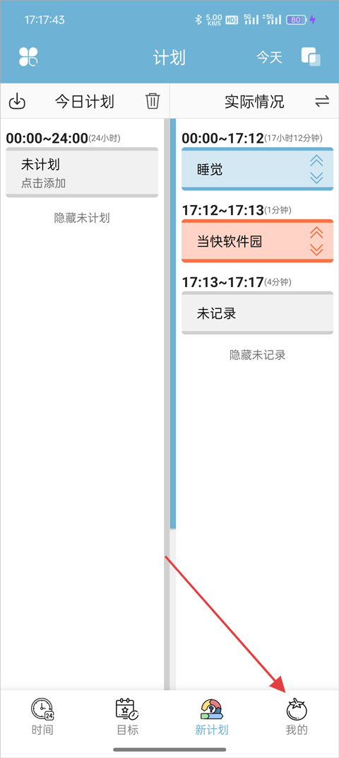 1、进入“时间”功能,找到想要删除的计划并点击。