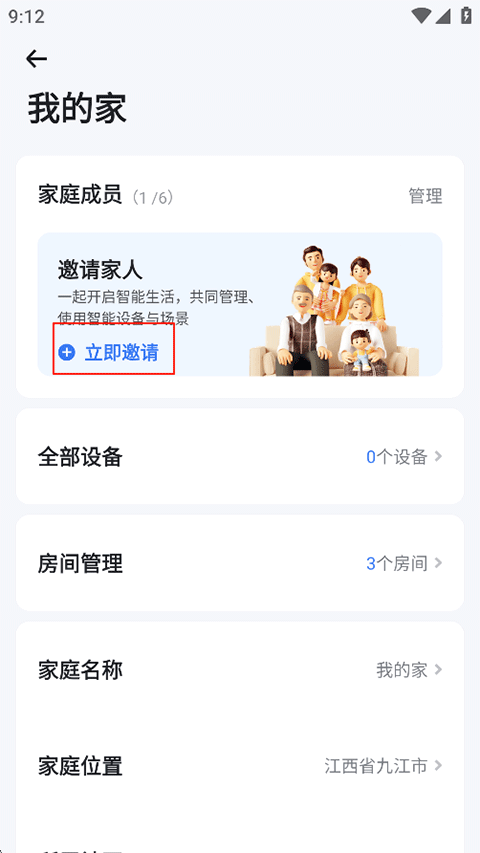 4、在家庭成员下方点击立即邀请按钮;