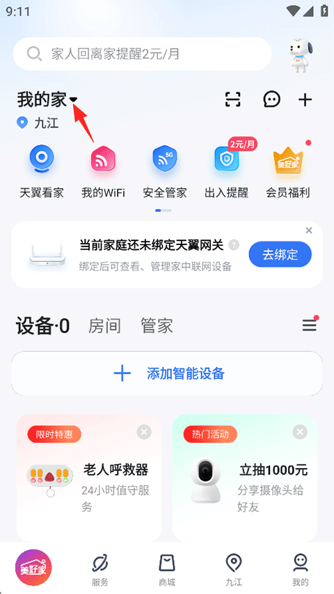 1、打开小翼管家APP,在首页点击我的家;