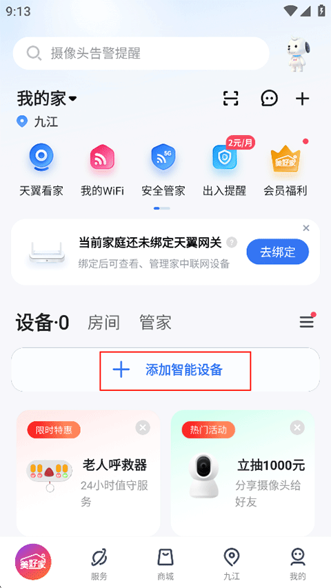1、在小翼管家首页点击下方的添加设备;