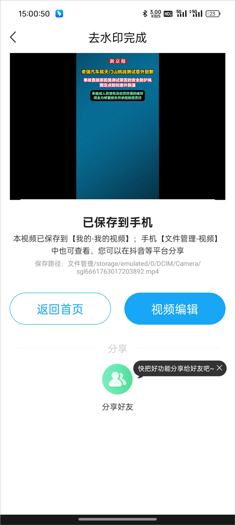 4、解析完成后,即可成功去除视频中的水印。