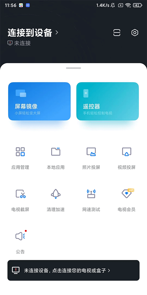 6、最后在首页还提供了【屏幕镜像】、【应用管理】、【网络测速】等特色功能服务。