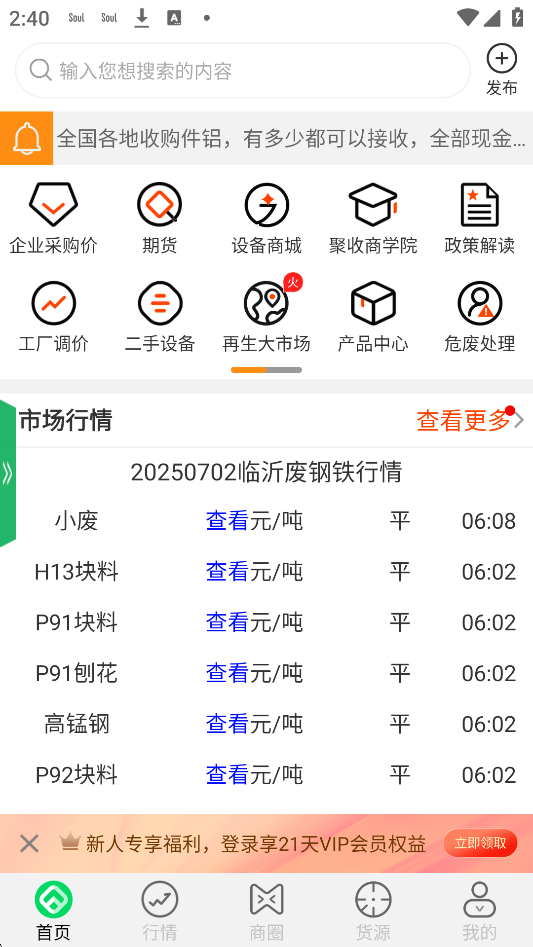 2、点击【企业采购价】,这里有每日企业最新收购价,全国各地区、各品类报价应有尽有!