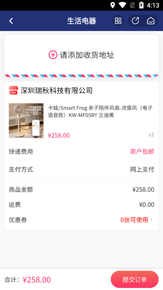 3、输入地址,点击提交订单
