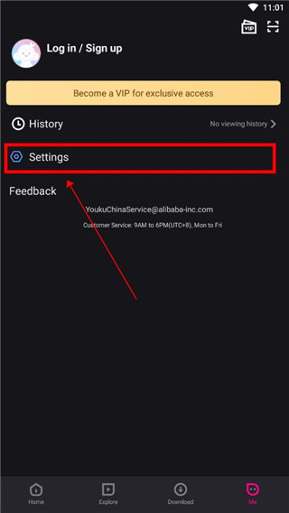 1、下载好YOUKU后,点击进入,选择下方的【Me】;