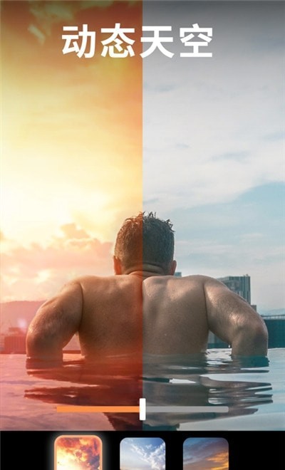 1、使用图层特效给相片中的天空添加动态效果,给静态的照片营造了氛围,增添情绪和动感。