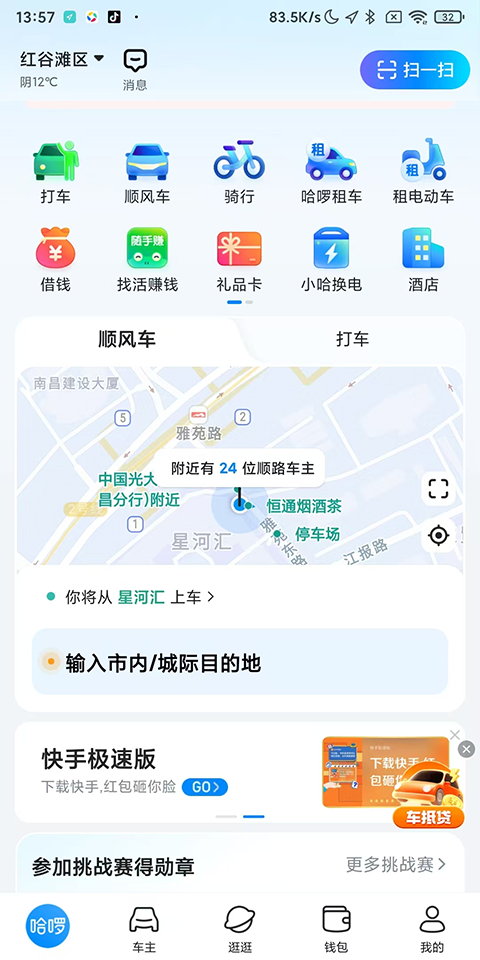 哈啰出行开启定位查询你当前所在的城市和地段,并为你查找最近的多种出行方式,有共享单车以及电动车和租车等多种服务,只要符合相关的规定即可开始便捷轻松出行,输入你当前的位置和目的地,将为你推荐最佳的路线和出行方式,太远的话可以进行打车以及乘坐地铁,近距离会选择阴凉的位置开始步行以及骑行,鼓励绿色无碳出行,有需要的话快来下载哈啰出行试试吧。