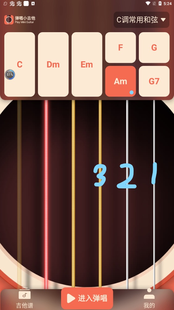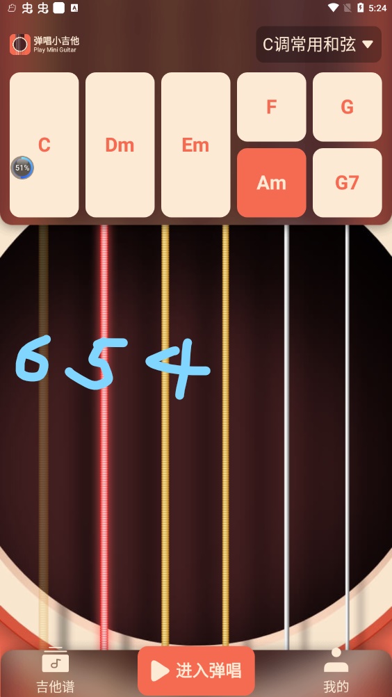 弹唱小吉他这款app拥有最专业的弹奏演奏技巧,让用户们从最基础的乐理知识开始学习,掌握每个音阶的效果并且不断熟练,到最后能够按照乐谱弹奏一番美妙的歌曲,点击软件中的琴弦即可开始弹奏,右上角还有更换不同的调区,让你可以灵活使用并且演奏最动人的音乐,如果还可以唱出歌曲里的歌词那么会让整个练习画面更加有趣,对乐器和吉他弹奏感兴趣的你一定不要错过弹唱小吉他这款软件啦。