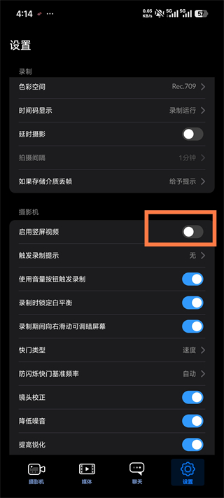2、在设置界面中,根据个人需求进行参数调节,若你希望以竖屏方式拍摄,请开启「启用竖屏视频」选项。