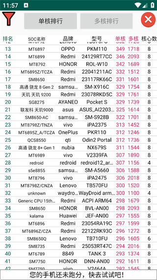 您可以通过排行榜查看自己的成绩,了解手机性能如何与其他设备对比。