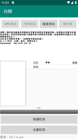 磁盘测试:通过填充磁盘的方式测试手机真实储存空间。