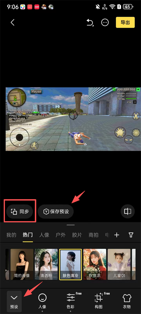 3、以【预设】为例,点击为图片添加合适的预设效果,并【保存预设】,最后点击左下角的【同步】按钮;