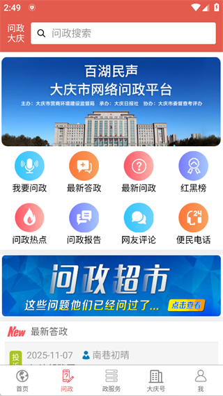大庆市网络问政平台,提供我要问政、答政、问政热点等政务互动功能。