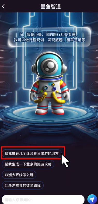 2、进入页面之后,可以看见此次更新推出的「墨鱼智道」AI助手,在底部对话框内,手动输入你的问题,也可以直接点击系统推送的问题。