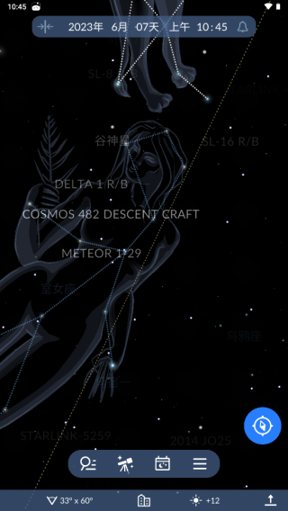 ◆ 将您的手机对准天空,在交互式天空 地图 上看到空间物体的实时位置。