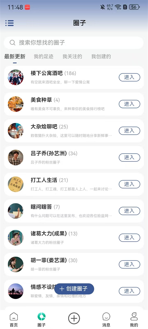 2、圈子:关注感兴趣的圈子,寻找同兴趣的朋友。